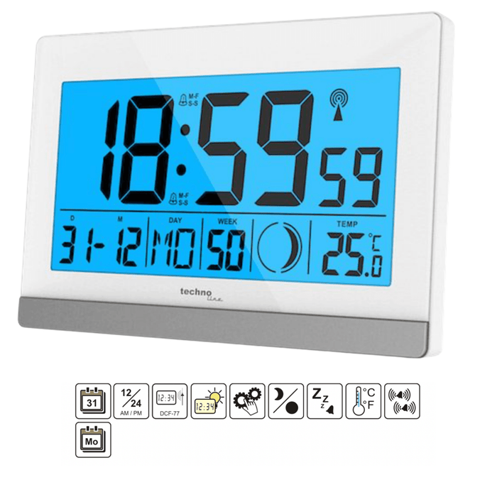 Radio gestuurde wekker - Datum - Tempratuur/Weersomstandigheden - Wekkerfunctie - Technoline WS 8056